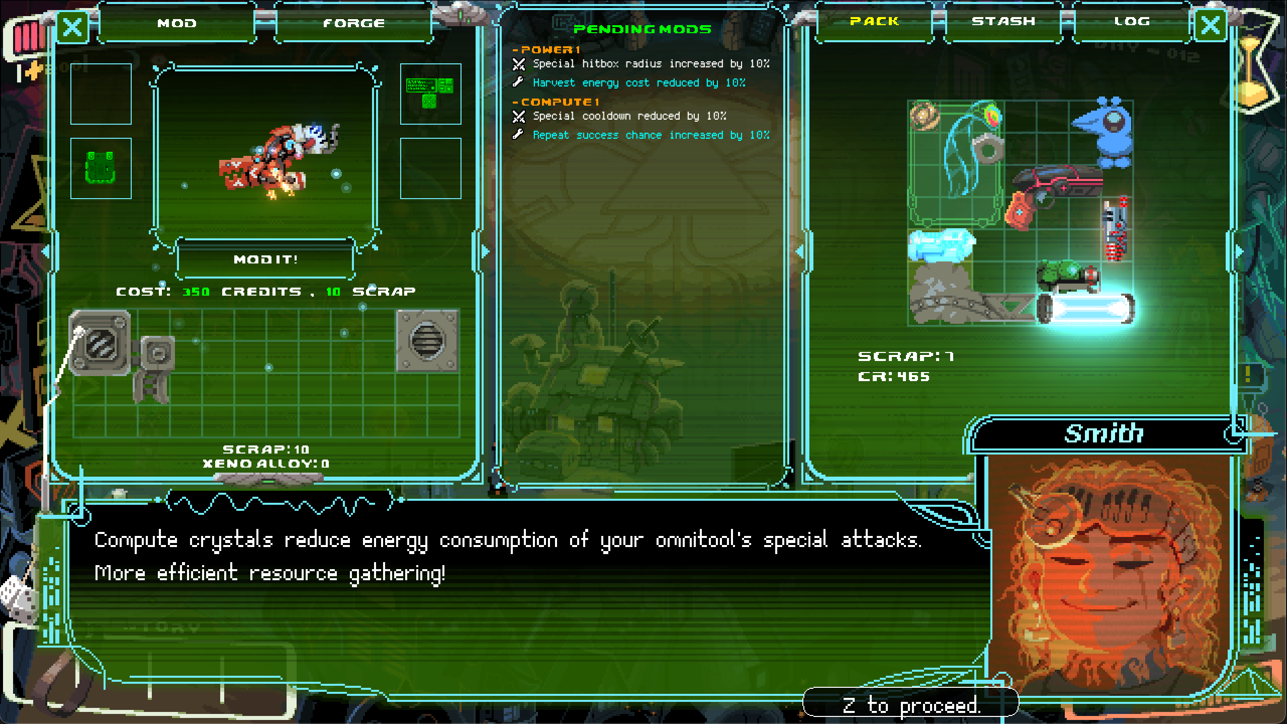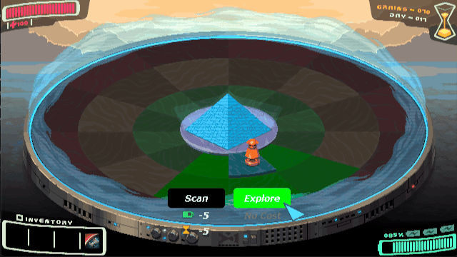 Inventory space is precious. Your omnipack can only hold so much, and if you die, most of what you’re carrying is lost to the sands.
