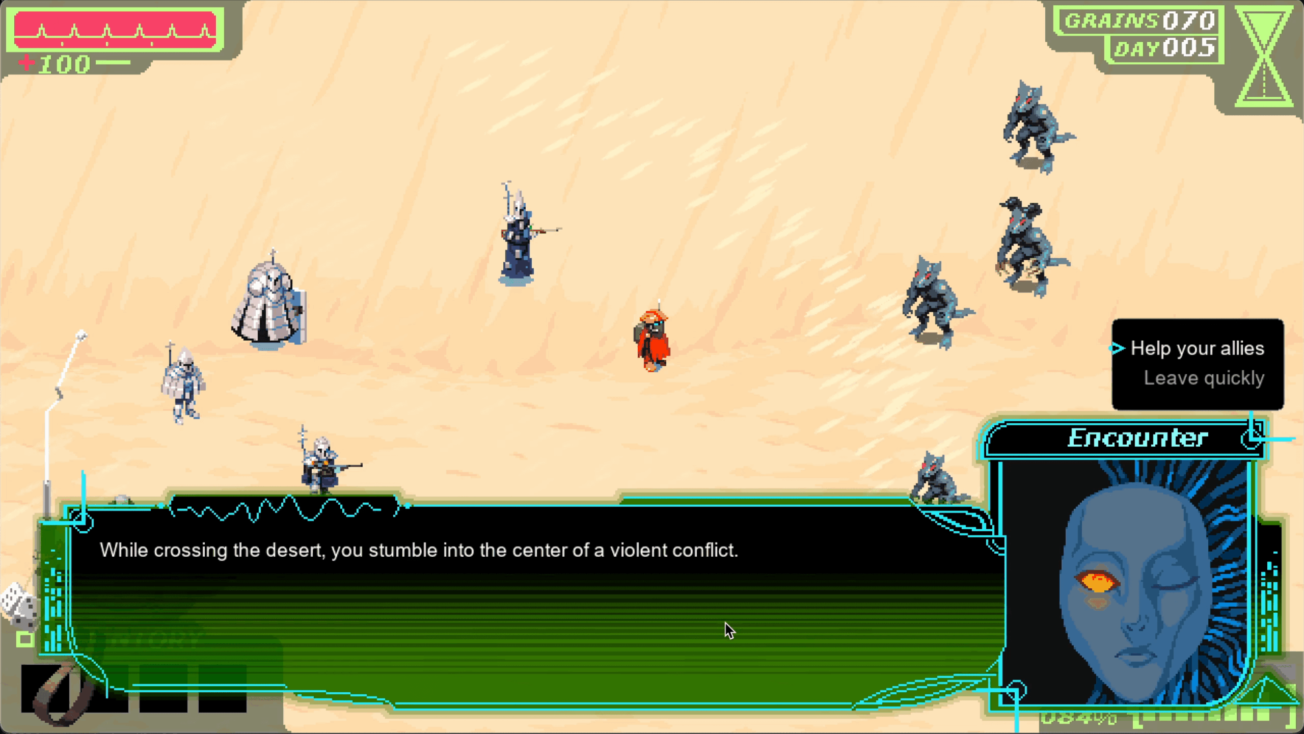 You are a scavenger, one of many drawn to the Nexus. Each morning, you venture into the desert to search wrecked starships, loot buried caches, and salvage anything of value. Each evening, the storm returns… and the world resets.